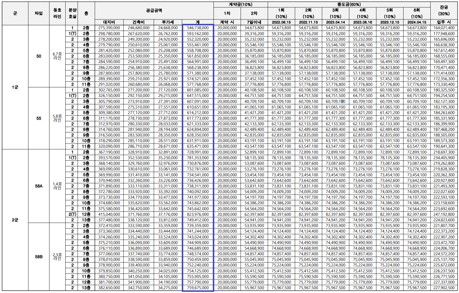• 대출 금액 : 중도금대출이 가능할 경우 총 분양가격의 60% 범위 내 무이자 대출을 알선