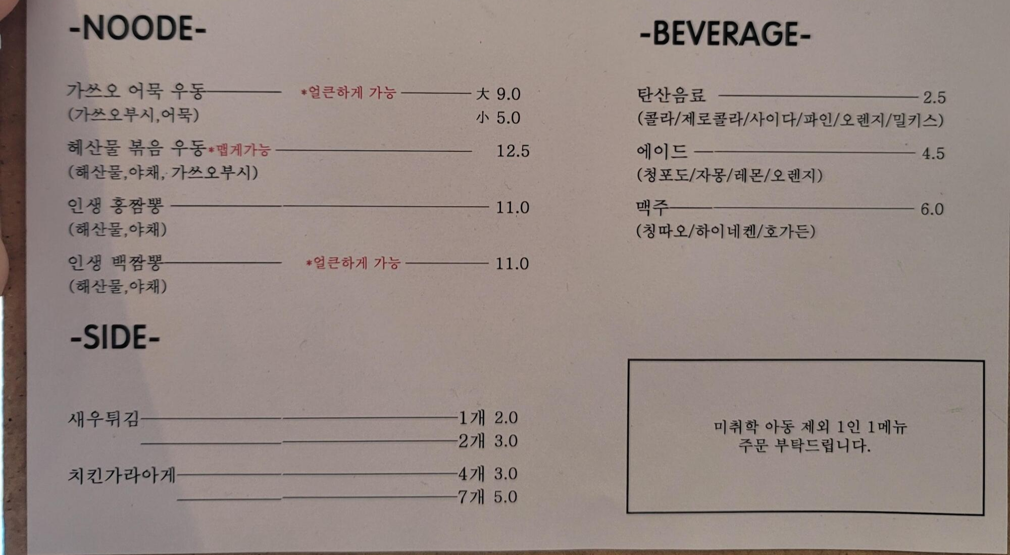 바로 앞에 메뉴판이 있으니 참고하시면 됩니당