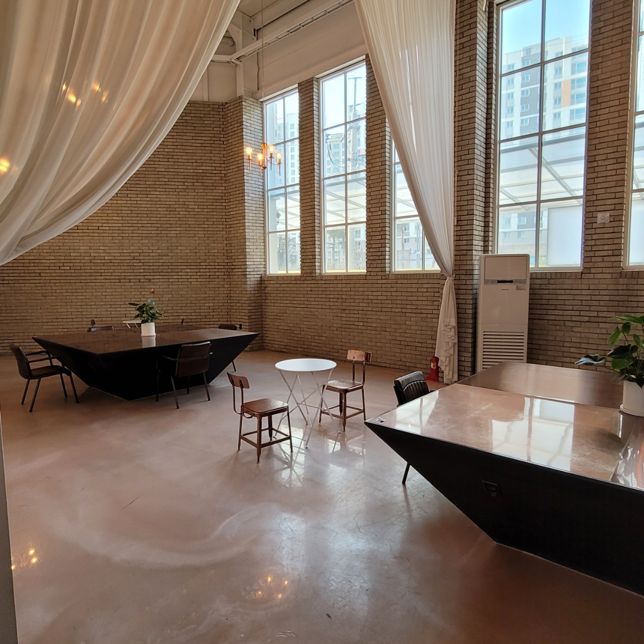 콘센트도 항상 있고, 층고도 2층높이로 매우 높고